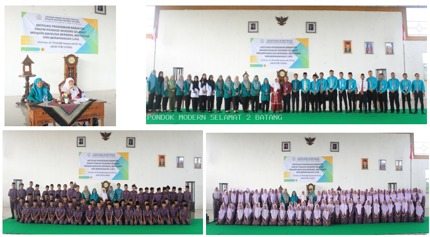 Suasana khidmat dan penuh semangat mewarnai Pondok Modern Selamat Batang pada tanggal 10 April 2025. Para santri Pondok Modern Selamat 2 Batang dan santri dari Pondok Modern Selamat 3 Gringsing berkumpul untuk mengikuti seminar motivasi pendidikan karakter di gedung auditorium yang menghadirkan sosok inspiratif, Ibu Rektor UNISS, Ibu Hj. Prof.DR.Ismawati,M.Ag. dengan tema "Menjadi Manusia Beriman, Bertakwa, dan Berwawasan Luas," seminar ini menjadi fase pencerahan bagi para calon pemimpin masa depan.